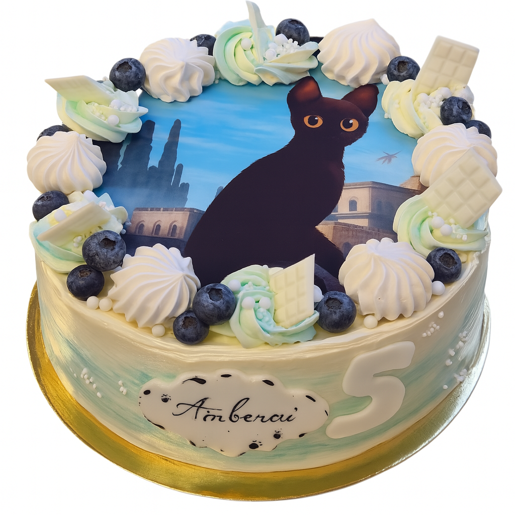Straumes kaķa kūka ar ēdamo bildi